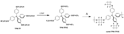 图1 四聚合度三氟乙烯基醚单个及高聚物的生成。