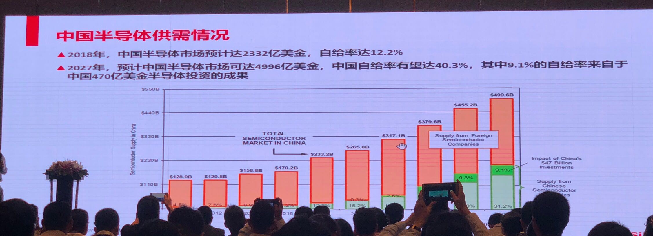 全世界PCB 做版服务提供商“捷多邦”从市场调研组织的数据统计掌握到,2018年中国半导体销售市场预估达2332亿美金,自有率达12.2%。到2027年,预估中国半导体销售市场将达4996亿美金,我国自有率力争做到40.3%,在其中9.1%的自有率来源于我国470亿美金半导体材料项目投资的成效。由此可见我国和产业投资基金对电子器件产业链的积极主动积极意义。